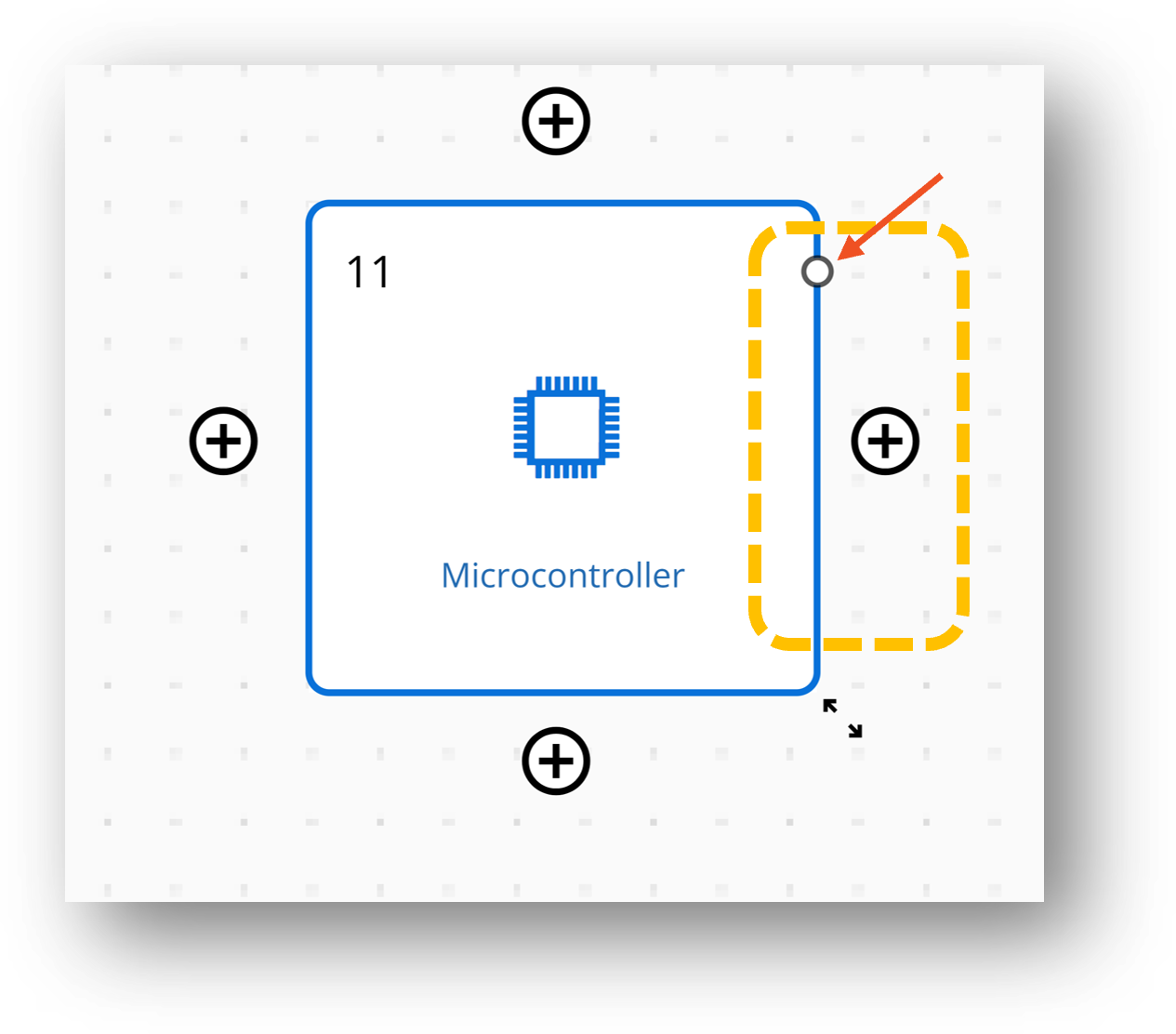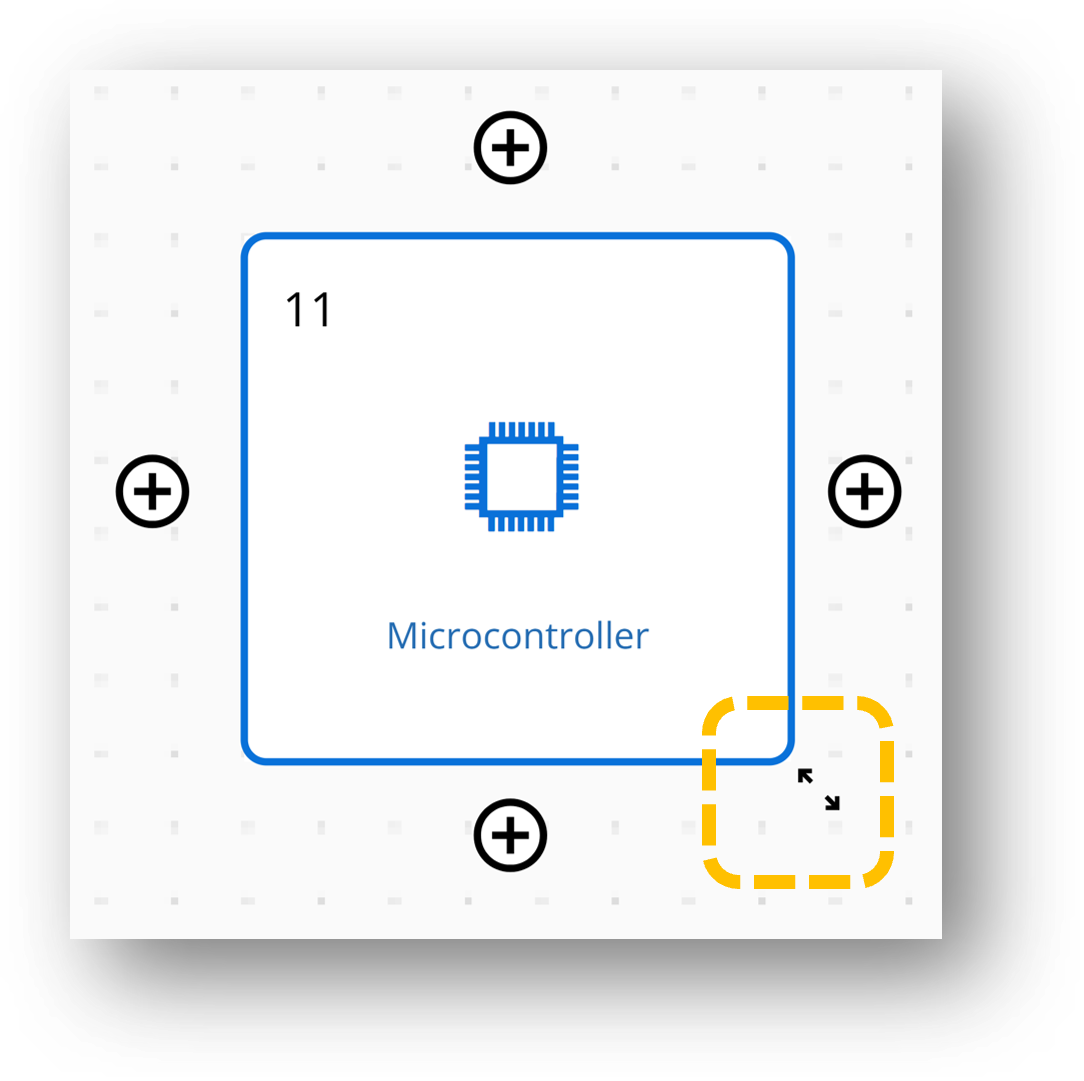 You can resize the block by selecting the resize icon shown in the figure below, located at the corner of the block, and dragging it across the grid.