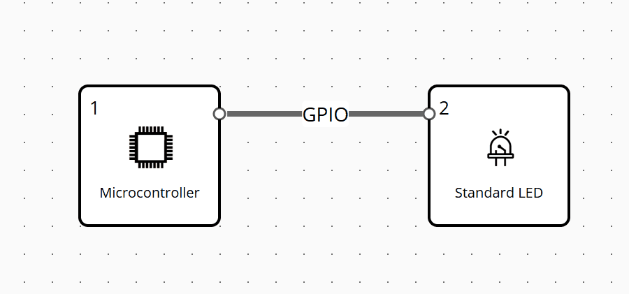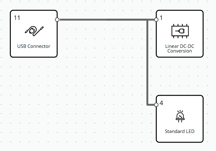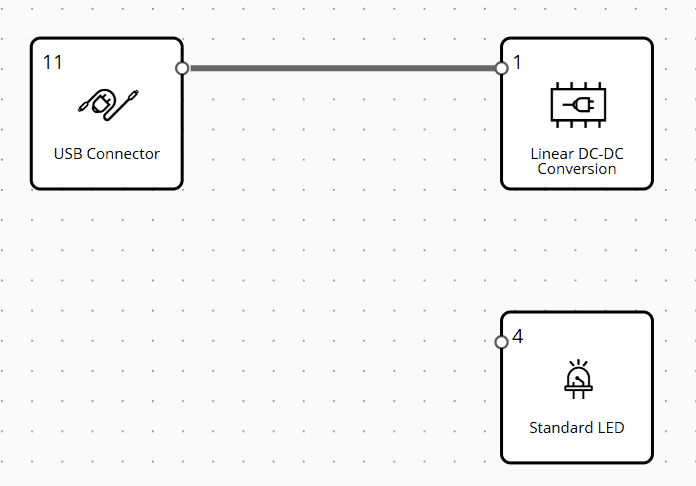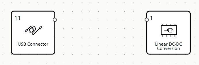 The Design Library panel, displays the list of Functional blocks and their categories available for designing an electronics project. To gain more insight into the concepts of Functional blocks, please visit the page. You can also search the name of functionality in the top searching bar, and the search term will be highlighted in grey across blocks within Library Panel. User can close the Library Panel if they tap on the handle, and can re-open it if they tap again on a handle.