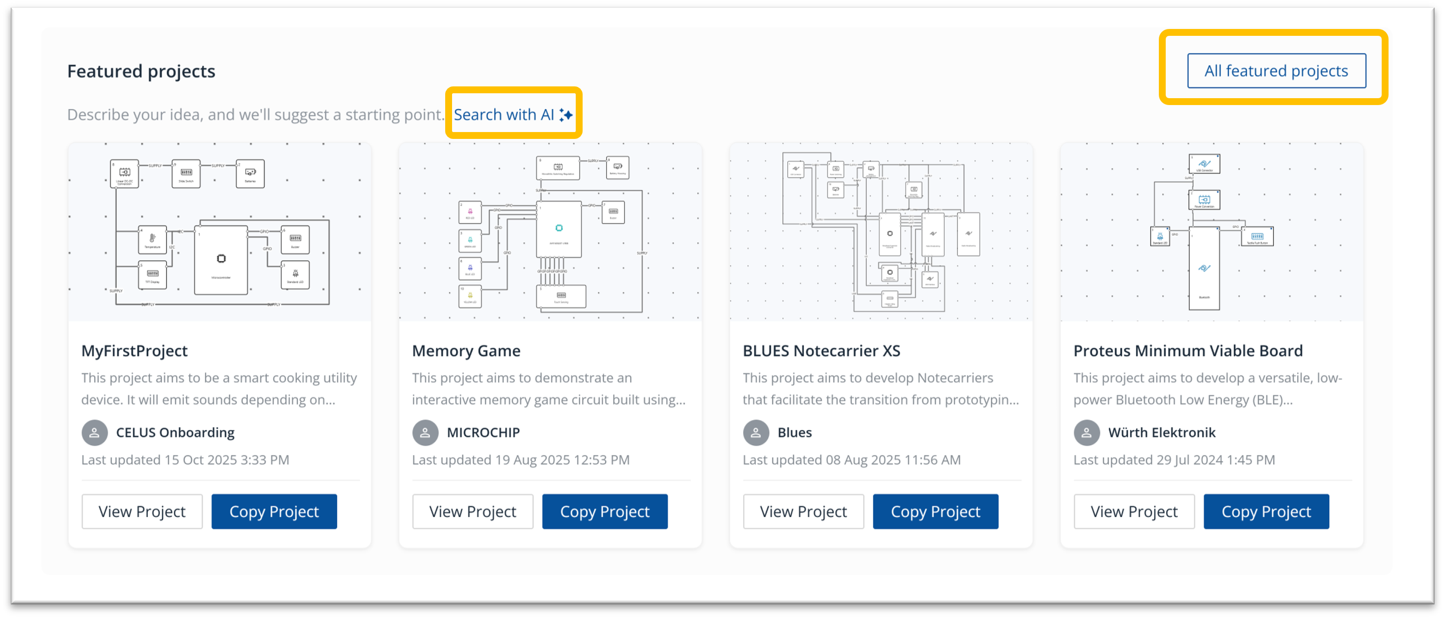 - Who creates them? : The Customer Success team, in partnership with manufacturers and experienced Design Studio users, develops Featured Projects. This collaboration ensures that each project not only reflects electronic design best practices but also incorporates insights and innovations from the industry.